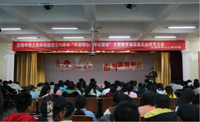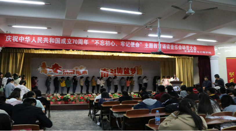 為貫徹“不忘初心、牢記使命”主題教育精神,引導(dǎo)全院學(xué)生學(xué)習(xí)貫徹習(xí)近平新時(shí)代中國特色社會主義思想,增強(qiáng)“四個(gè)意識”、堅(jiān)定“四個(gè)自信”、做到“兩個(gè)維護(hù)”,豐富校園文化生活,培育愛國主義精神,以詩歌朗誦形式禮贊偉大祖國。365英國上市官方網(wǎng)站于2019年10月21日下午4:30在學(xué)生發(fā)展中心四樓召開慶祝中華人民共和國成立70周年“不忘初心、牢記使命”主題教育誦讀音樂會動員大會,共計(jì)150余人參加了此次大會。