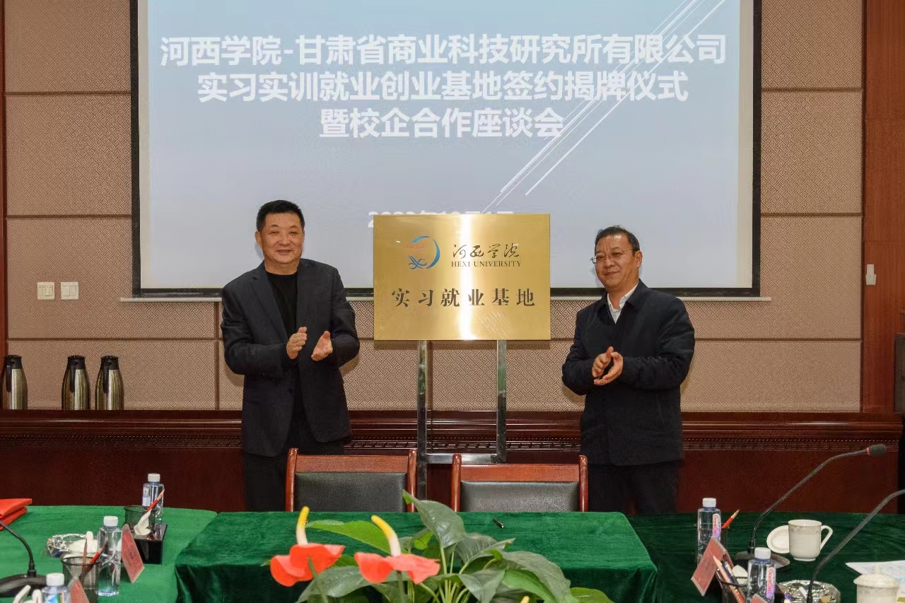 12月1日,學(xué)校與甘肅省商業(yè)科技研究所有限公司舉行了基地合作簽約及揭牌儀式。學(xué)校黨委常委、紀(jì)委書記、監(jiān)察專員殷大斌、甘肅省商業(yè)科技研究所有限公司董事長(zhǎng)杜建泉、365英國(guó)上市官方網(wǎng)站負(fù)責(zé)人參加了簽約及揭牌儀式。殷大斌代表學(xué)校與甘肅省商業(yè)科技研究所有限公司簽訂了合作協(xié)議,并為河西學(xué)院實(shí)習(xí)就業(yè)基地揭牌。