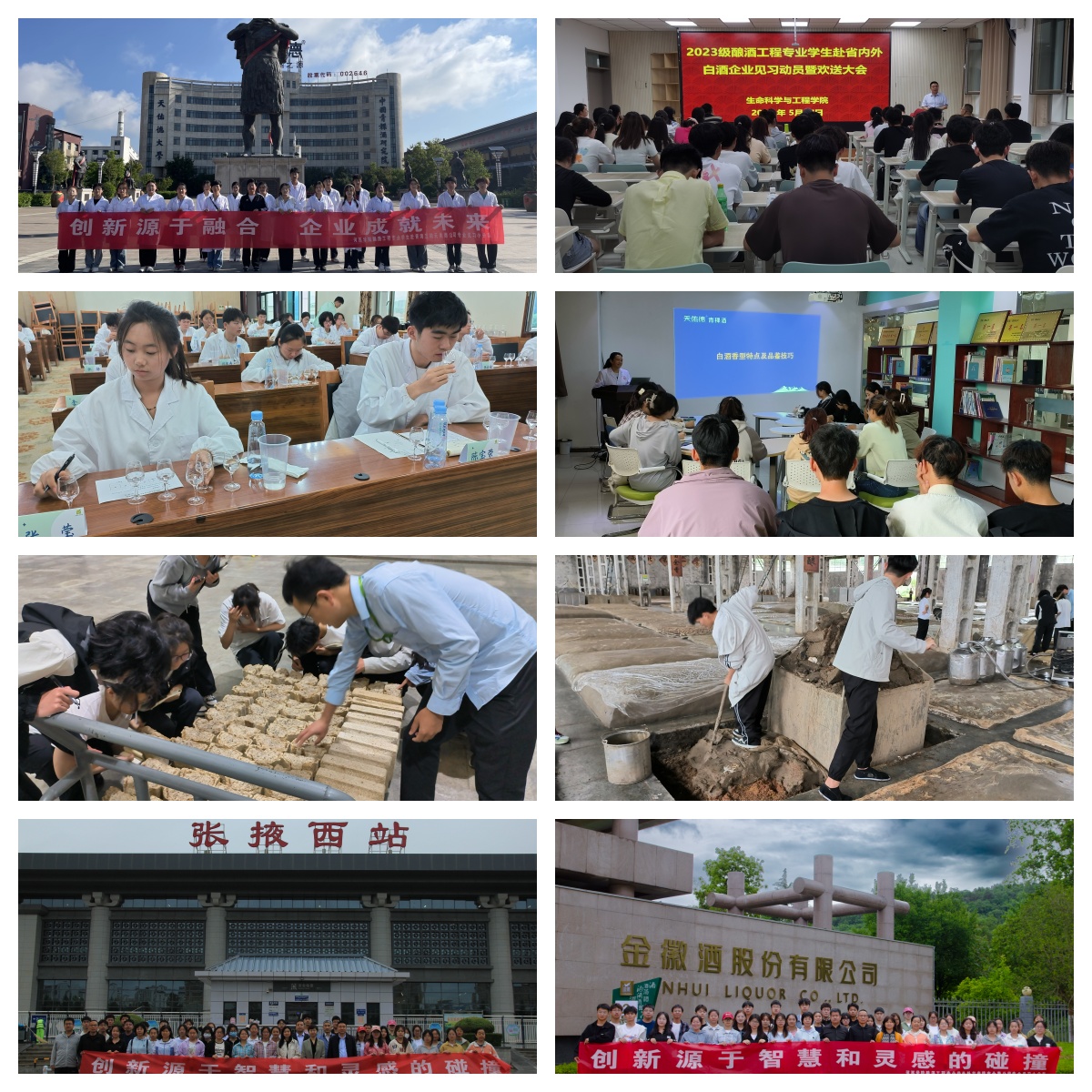 為期8天的專業(yè)見習(xí),師生共同參觀企業(yè)、參加釀酒工藝和生產(chǎn)安全培訓(xùn)專題輔導(dǎo)報(bào)告、企業(yè)文化學(xué)習(xí)與感悟、白酒品評(píng)基本知識(shí)、品酒實(shí)操、酒類香型分類、白酒生產(chǎn)工藝操作學(xué)習(xí)等(制曲、發(fā)酵、蒸酒等)生產(chǎn)實(shí)踐環(huán)節(jié),白天集體組織學(xué)習(xí),晚上由專業(yè)教師組織以小組形式開展討論交流,切實(shí)讓師生深刻感悟企業(yè)文化、認(rèn)知行業(yè)模式和憧憬未來(lái)職業(yè)發(fā)展。