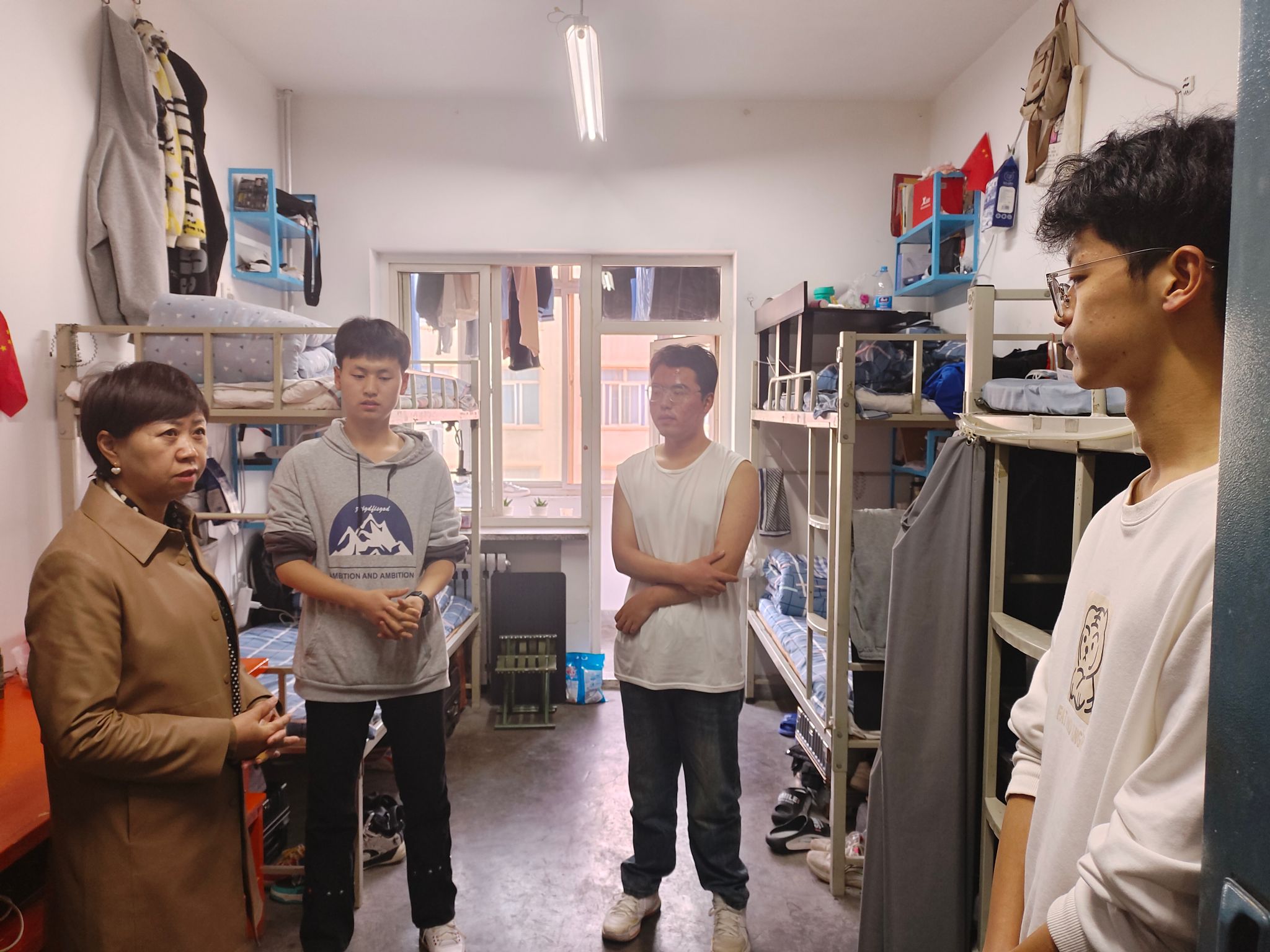 在宿舍,老師們仔細檢查了宿舍內(nèi)的電器電源設(shè)備、有無使用大功率電器等情況,叮囑同學(xué)們要增強安全防范意識,注意宿舍用電安全,防范各類安全隱患,共同維護校園安全穩(wěn)定。同時,對宿舍衛(wèi)生狀況進行了全面檢查,鼓勵同學(xué)們積極營造整潔、舒適的居住環(huán)境,對存在衛(wèi)生問題的宿舍提出了整改要求,引導(dǎo)同學(xué)們養(yǎng)成良好的衛(wèi)生習(xí)慣。在走訪過程中,老師們與同學(xué)們親切交流,深入了解他們在學(xué)習(xí)、就業(yè)、考研等方面的困惑和需求,鼓勵大家明確學(xué)習(xí)目標(biāo),勤奮學(xué)習(xí),掌握扎實的專業(yè)知識,積極參與科研和社會實踐活動,全面提升綜合素質(zhì);激勵考研上線同學(xué)多與導(dǎo)師溝通,堅定信念,認真充分準(zhǔn)備復(fù)試;向就業(yè)學(xué)生分析當(dāng)前就業(yè)形式,鼓勵大家增強就業(yè)信心,轉(zhuǎn)變就業(yè)觀念,提升就業(yè)競爭力,把握機遇積極主動就業(yè)創(chuàng)業(yè)。