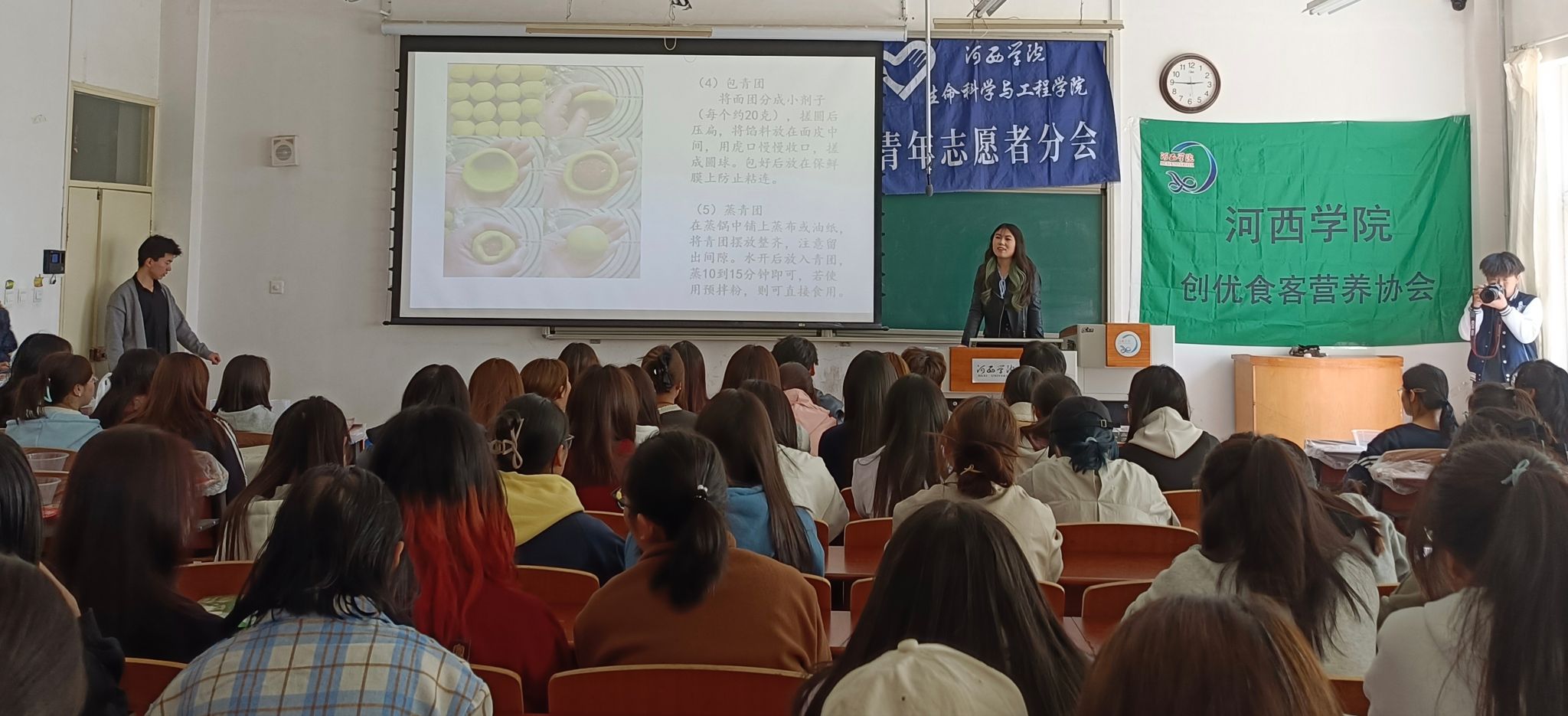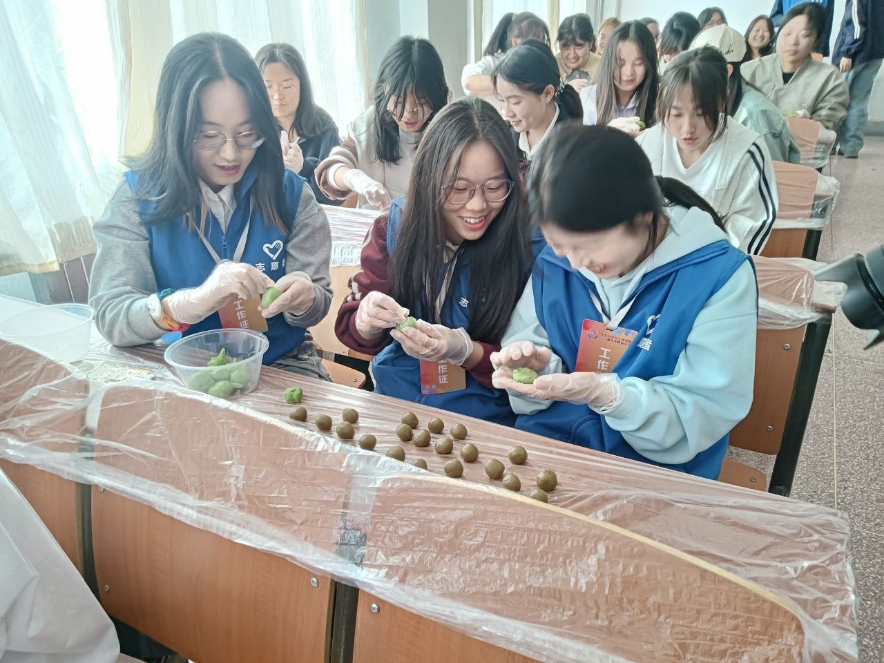 活動中,同學(xué)們首先了解了關(guān)于清明節(jié)制作青團(tuán)的歷史淵源和文化意義,以及這一傳統(tǒng)習(xí)俗背后深厚的文化底蘊。在專業(yè)老師的指導(dǎo)下,同學(xué)們認(rèn)真學(xué)習(xí)了青團(tuán)的制作方法,從采摘艾草、制作青汁,到和面、包餡、蒸煮,同學(xué)們分工明確,互相幫助,有的負(fù)責(zé)揉面,有的負(fù)責(zé)包餡,還有的負(fù)責(zé)裝飾,現(xiàn)場氣氛熱烈而和諧。經(jīng)過大家的共同努力,一個個翠綠、軟糯的青團(tuán)新鮮出爐。