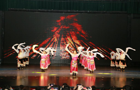 晚會形式多樣、精彩紛呈。相聲《非同凡響》將中國傳統(tǒng)曲藝文化與表演相結(jié)合,舞蹈《最好的記憶》《青春韻動》、《大夢想家》、《EiEi》、《最炫民族風(fēng)》展現(xiàn)了當(dāng)代大學(xué)生的飛揚活力和青春夢想;歌曲《中國人》、《世間美好與你環(huán)環(huán)相扣》、《我的歌聲里》展現(xiàn)了當(dāng)代大學(xué)生的拼搏奮斗和蓬勃朝氣;情景劇《同桌的你》、華爾茲《The simple and pure love》、手語舞《大魚》、古典舞《桃花諾》等或激情澎湃,或優(yōu)雅韻致;教師代表帶來的藏舞《扎西德勒》將現(xiàn)場氣氛推向了高潮。晚會在合唱《在路上》中落下帷幕。
