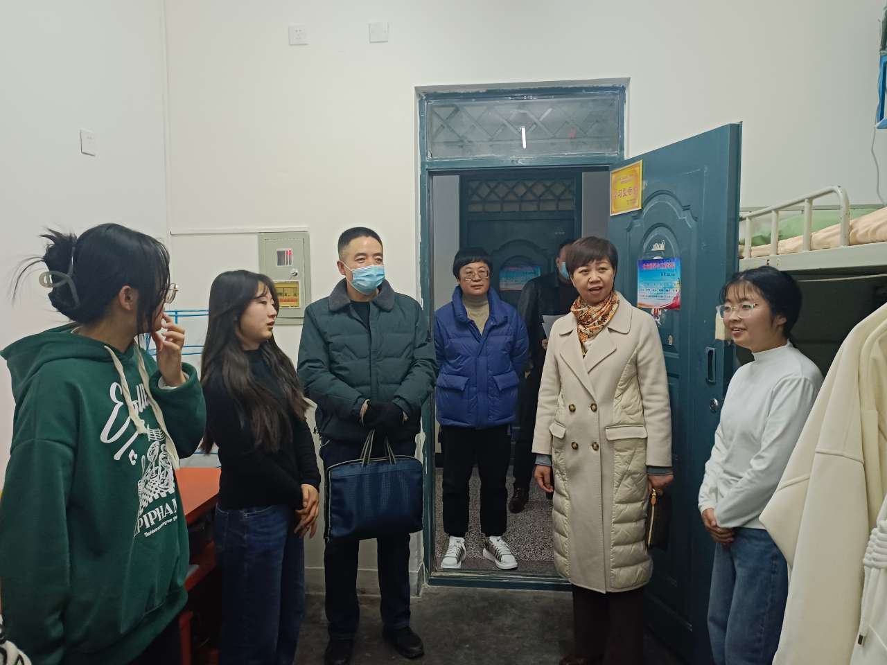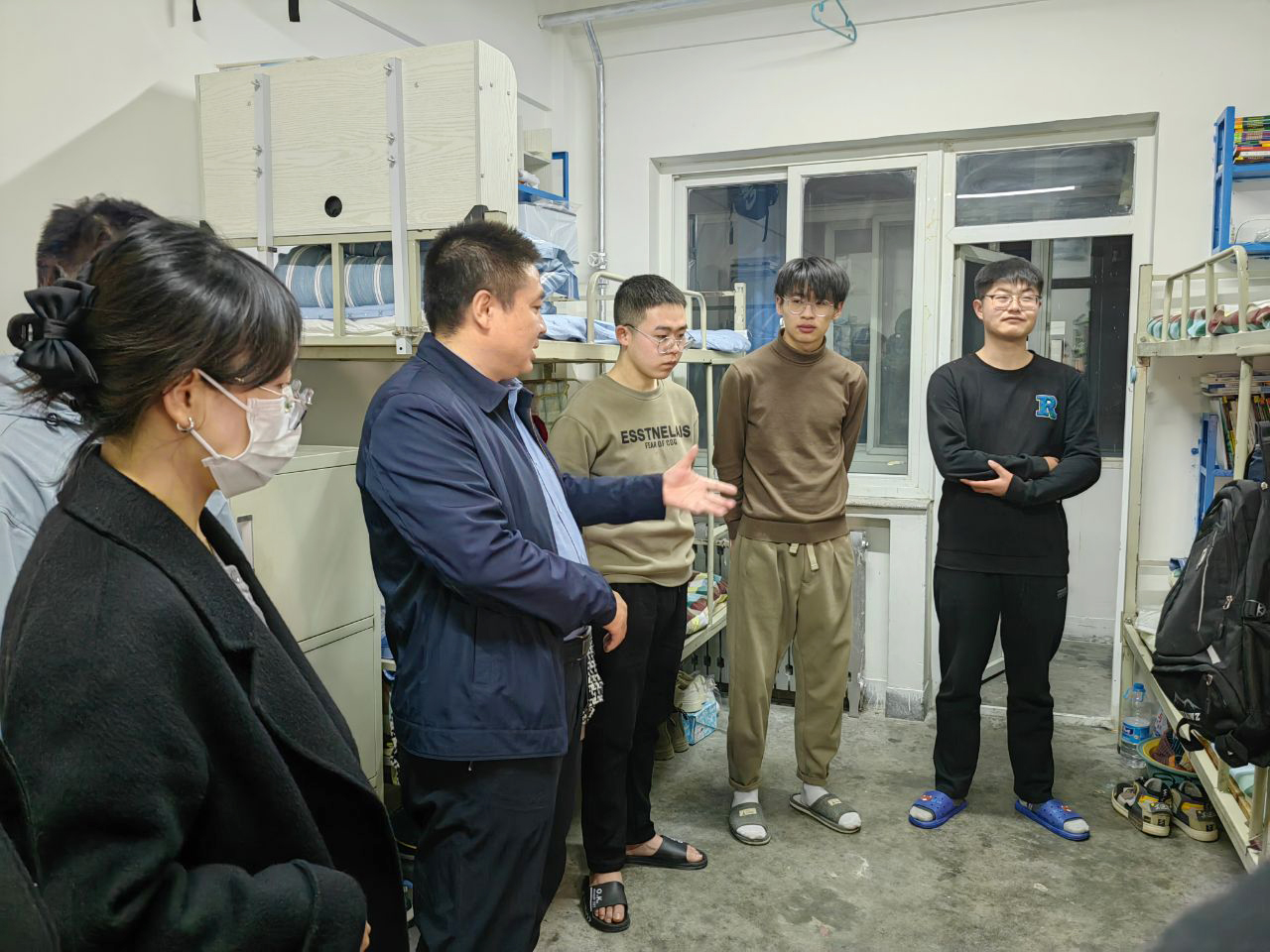 院領(lǐng)導(dǎo)和老師與同學(xué)們親切交流,聽取學(xué)生假期學(xué)習(xí)、生活、健康狀況和新學(xué)期計(jì)劃,并收集學(xué)生訴求和想法;提醒同學(xué)們注意用電安全、網(wǎng)絡(luò)電信詐騙等相關(guān)事宜,并對學(xué)生考研就業(yè)等方面的問題和困惑進(jìn)行了深入交流,對返校學(xué)子新學(xué)期良好的精神面貌與干凈整潔的寢室環(huán)境表示贊揚(yáng)。老師叮囑同學(xué)們要自覺遵守校紀(jì)校規(guī),科學(xué)做好健康防護(hù),養(yǎng)成良好的衛(wèi)生習(xí)慣和健康的生活方式。同時(shí),勉勵同學(xué)們在新學(xué)期,要勤于學(xué)習(xí)、勇于探索、志存高遠(yuǎn)、腳踏實(shí)地,及早規(guī)劃學(xué)習(xí)目標(biāo),珍惜大學(xué)時(shí)光、不負(fù)青春韶華,用踔厲奮發(fā)、青春向上的力量,承擔(dān)起新時(shí)代的責(zé)任與使命。