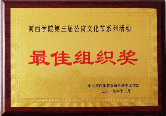 河西學(xué)院第三屆公寓文化節(jié)系列活動(dòng)最佳組織獎(jiǎng)