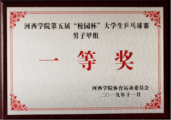 河西學(xué)院第五屆“校園杯”大學(xué)生乒乓球賽男子甲組一等獎