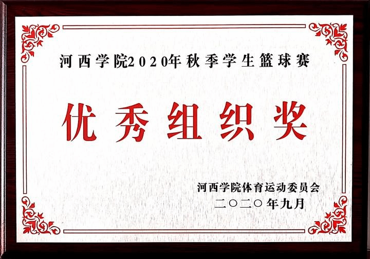 河西學院2020年秋季學生籃球賽優(yōu)秀組織獎